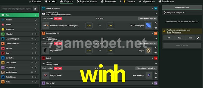 O winh oferece uma grande seleção de opções de apostas em e-sports com probabilidades competitivas